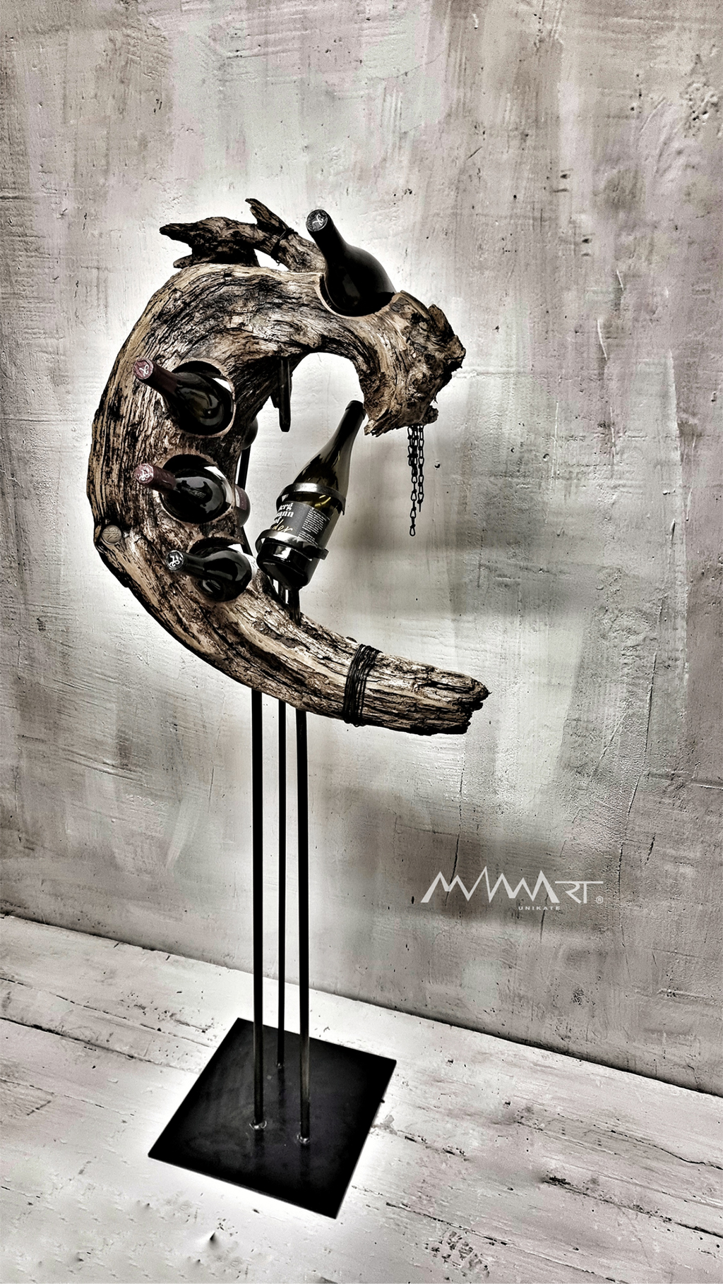 Alle Unikate sind absolut einzigartig und werden individuell von Hand angefertigt. Bei der Herstellung werden in der Regel Wildhölzer die ich auf meinen Streifzügen in der Natur berge mit hochwertigen Materialien kombiniert wie z.B. Stahl, Stein, Glas…