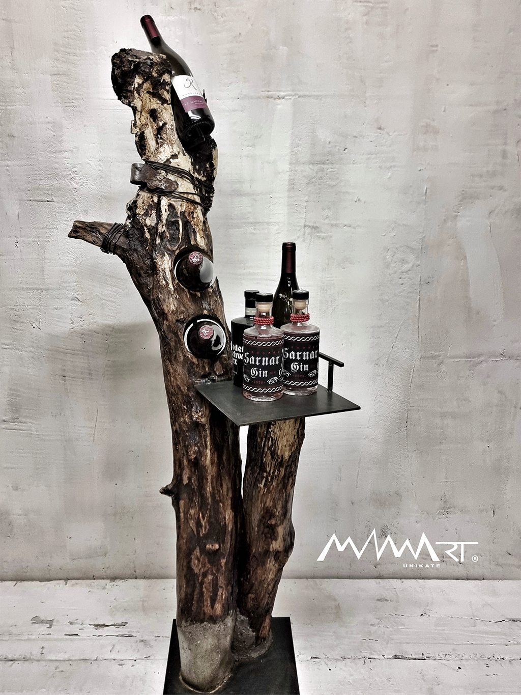 Alle Unikate sind absolut einzigartig und werden individuell von Hand angefertigt. Bei der Herstellung werden in der Regel Wildhölzer die ich auf meinen Streifzügen in der Natur berge mit hochwertigen Materialien kombiniert wie z.B. Stahl, Stein, Glas…